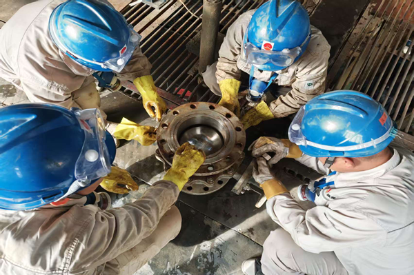 大型球閥的檢修是一項對精度要求極高的工作。從拆解閥體、檢查閥芯,到更換密封件、研磨密封面,每一個步驟都容不得半點馬虎。在高溫、高噪的現(xiàn)場環(huán)境中,檢修人員不僅要對抗體力消耗,更要保持高度的專業(yè)嚴謹。為了確保密封性能達標,他們反復測量密封面的平面度,用細砂紙手工研磨,直到達到工藝標準;在回裝螺栓時,嚴格按照對角順序和規(guī)定力矩緊固,避免因受力不均導致泄漏。作業(yè)中,有人佩戴著防護眼鏡與防毒面具,這既是對操作規(guī)程的遵守,更是對自身安全與生產責任的雙重擔當。